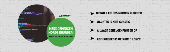 De aanhoudende schaarste aan computer geheugen zorgt ervoor dat nieuwe laptops en computers snel duurder worden. Werkgeheugen en opslag stijgen in prijs en fabrikanten berekenen deze kosten direct door aan consumenten. Refurbished laptops zijn al geproduceerd vóór deze prijsstijgingen en lopen daardoor altijd achter op de nieuwprijzen. Het gevolg is een steeds groter prijsverschil, waardoor refurbished kopen nu financieel aanzienlijk aantrekkelijker is.